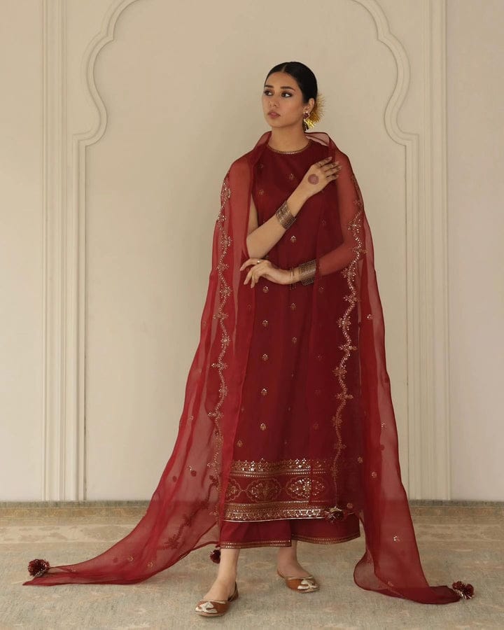Fabric: Its Tilla & Sequence Embroidery Work Dress with Organza Dupatta